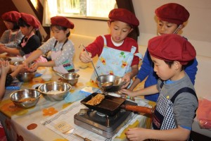 「大さじ1・・・」みんなそれぞれ計り方も勉強! 砂糖は、子供達のお好みにしました