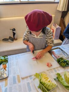 野菜を切るのは、9月から練習をしてきたので慣れてきた様子